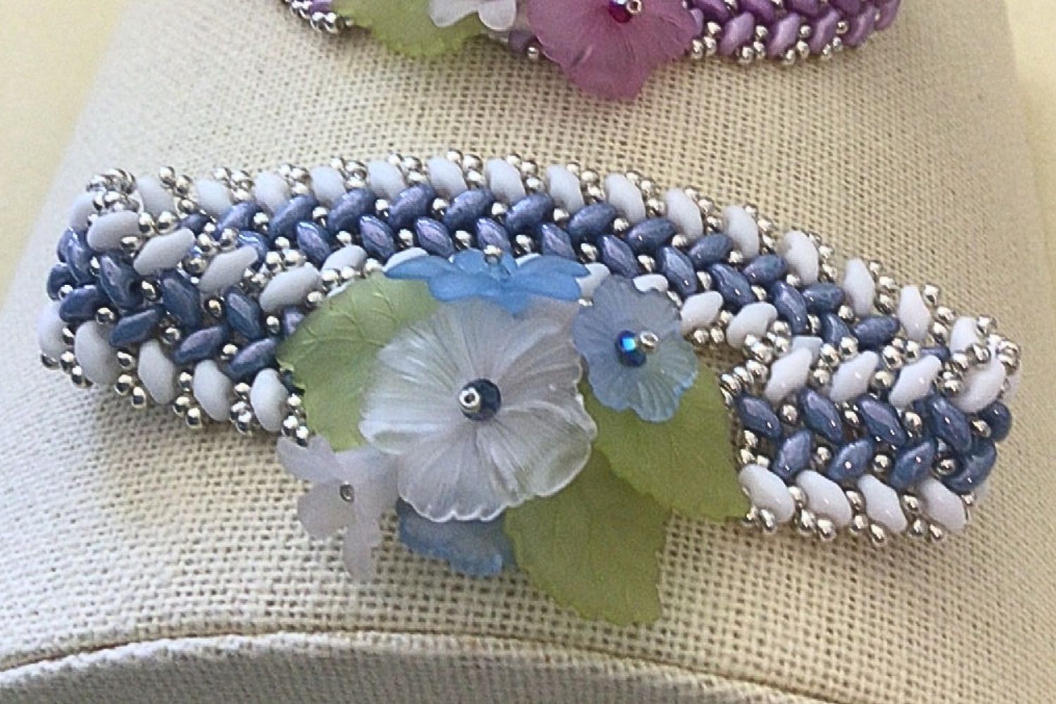 Join Jean Suleski in a beginner’s-friendly beading workshop! Using Superduo beads, Jean will guide you through bead weaving, designing the floral focal piece, and attaching the concealed magnetic closure. $45 materials fee paid cash day-of to instructor.