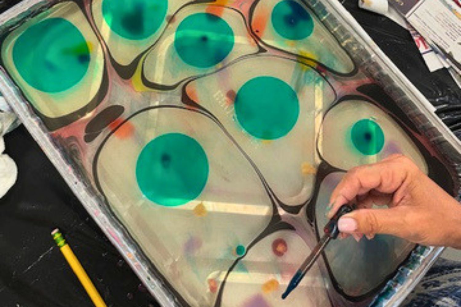 Learn to make your own decorative papers through the traditional marbling technique. The floating paints are swirled into patterns and the design is captured by laying paper on the surface of the marbling solution. $15 materials fee payable day-of.